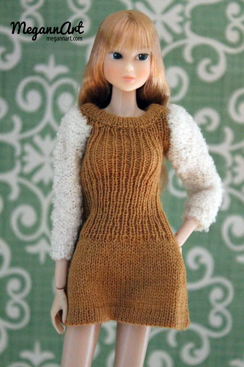 This lovely Momoko came as a part of the Happy Box 2014 set. Below are some photos of the doll out of the box. More than one PetWorks doll came with the knit outfit with puffy sleeves, which I can't say I've been a fan of, but the doll is darling. She didn't come with shoes, but I added by goldish flats so she wouldn't wander around the house taking photos barefooted. Support an artist! Visit my Etsy Shop. You can also follow my Twitter, Facebook, and Pinterest pages. Don’t forget to check out the new pattern book, Dolly Bureau. Subscribe to the email newsletter (on the right) and receive occasional discounts in the Etsy shop.
